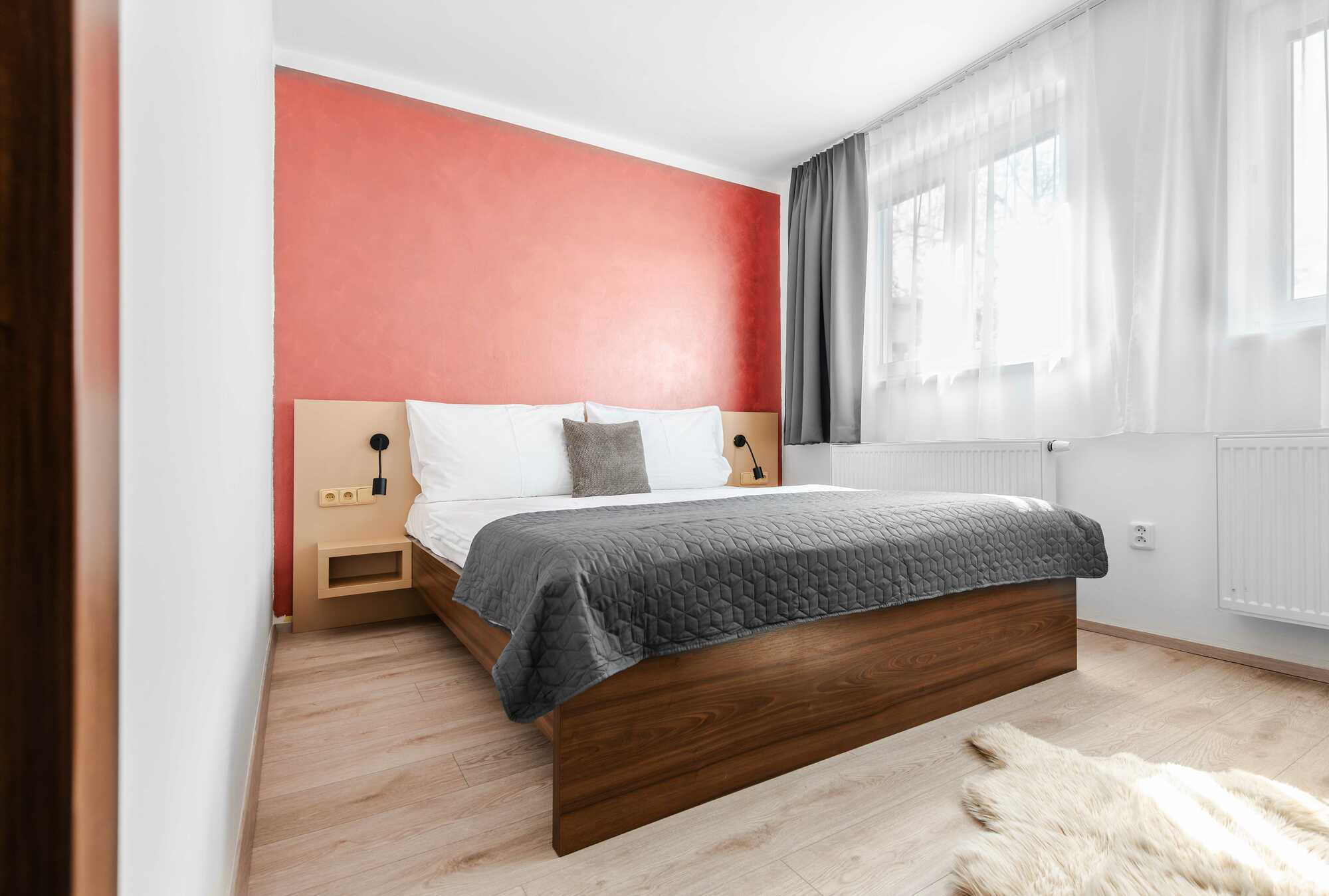 Moderní, nově rekonstruovaný pokoj s manželskou postelí 160 - 180 cm, Smart Led TV, Wifi, vybaven lednicí a setem na přípravu kávy a čaje, fénem.